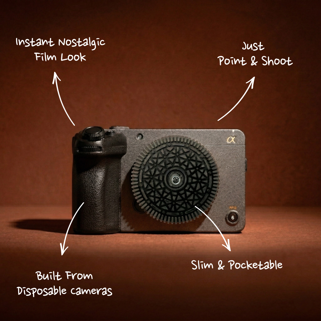 Every CRUMBS. lens starts life as a genuine disposable film camera lens. The same optics that gave disposable cameras their iconic look — extracted, mounted, and ready for your mirrorless. No imitation, no approximation. The real glass, the real character.