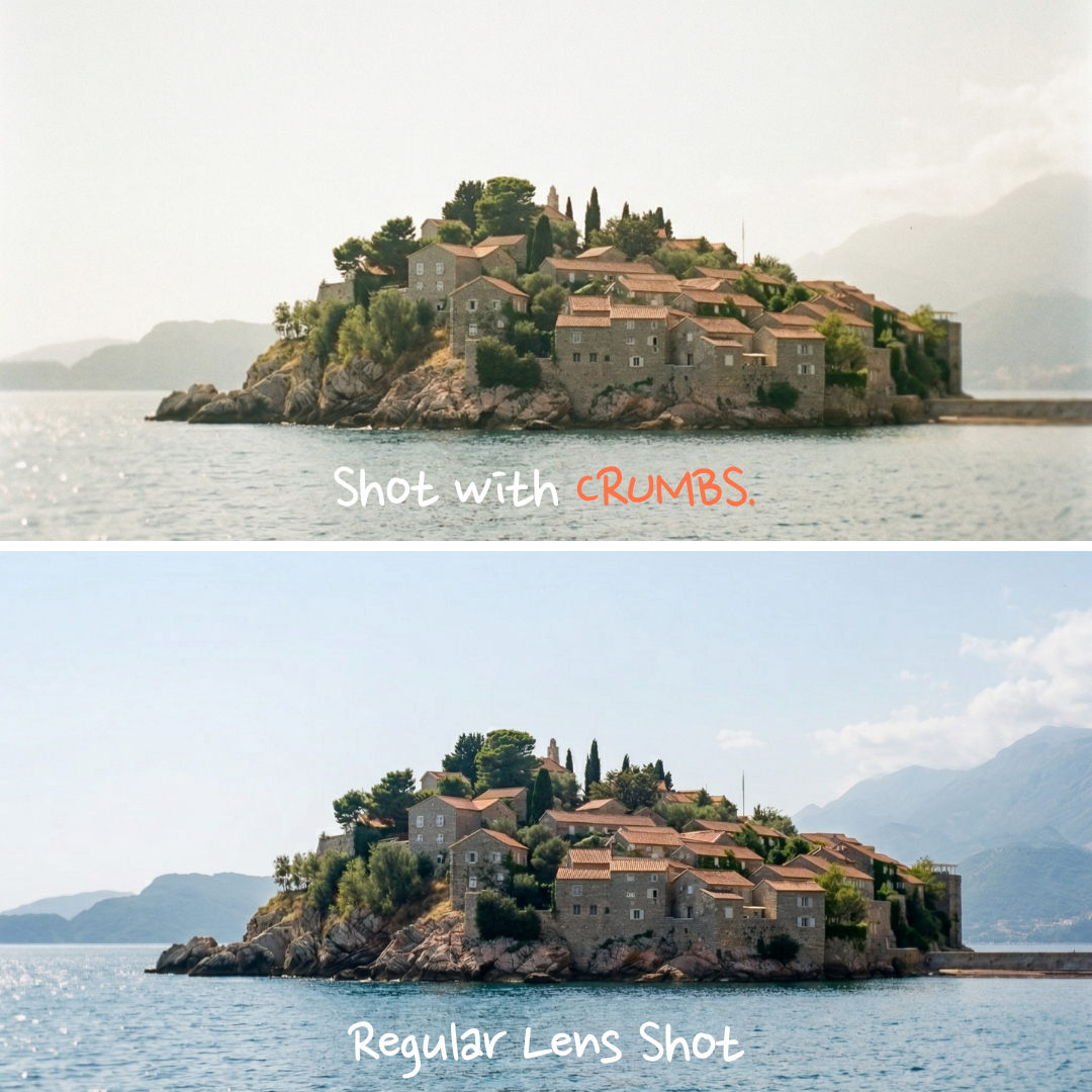 While editing software and filter can replicate some effects, it lacks the organic imperfactions that make real disposable film photography so unique. The CRUMBS. lens creates these effects directly in-camera, sving time on editing while delivering an authentic vintage aestethic.